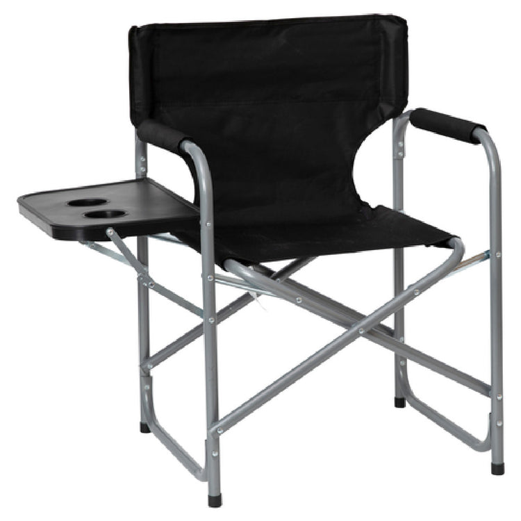 Flash Furniture JJ-CC305-BK-GG Folding Black Director's Camping Chair With Side Table And Cup Holder Portable Indoor/Outdoor Steel Framed Sports Chair [JJ-CC305-BK-GG]