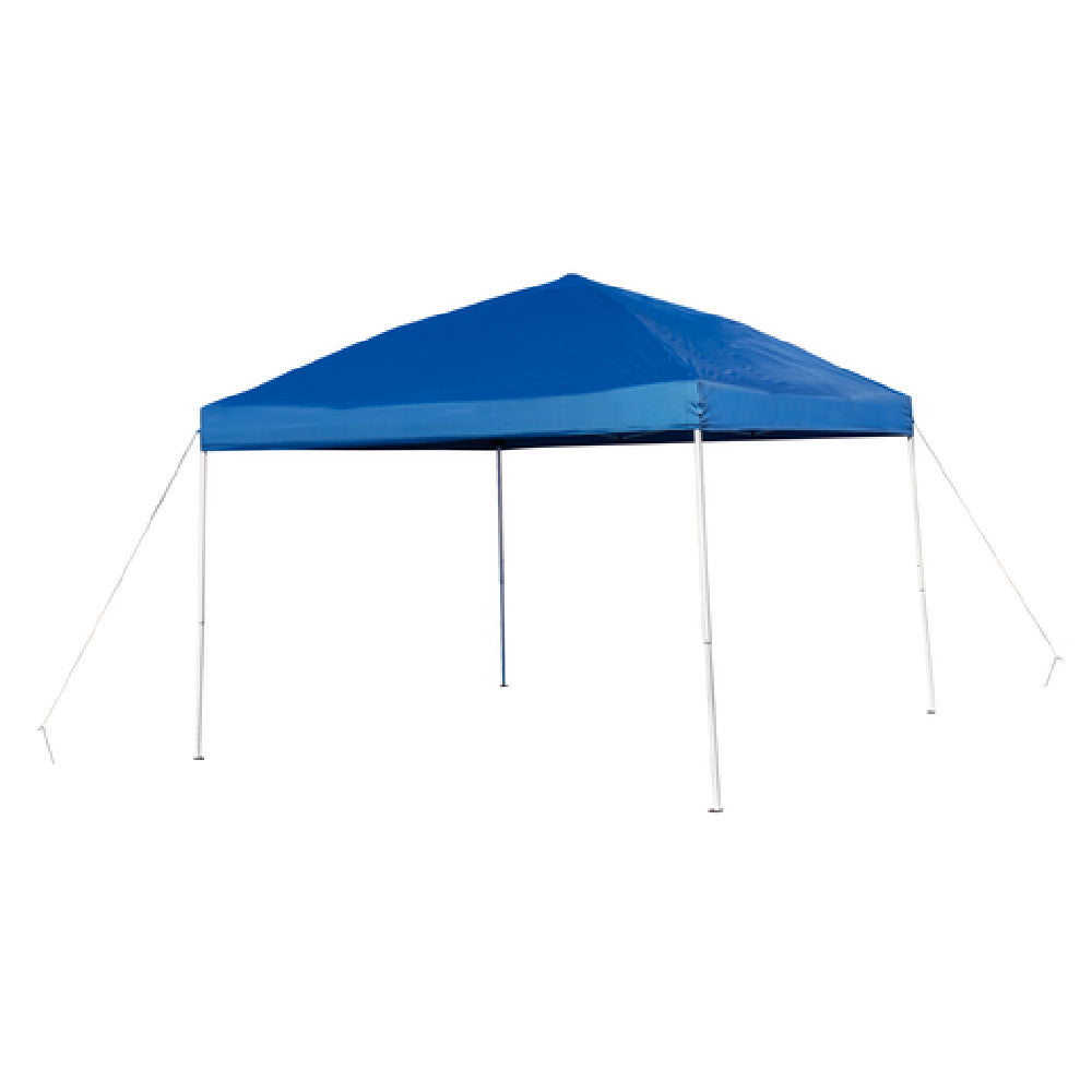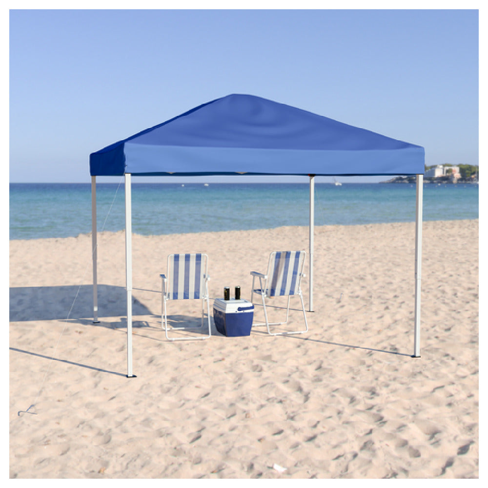 Flash Furniture JJ-GZ1010-BL-GG Pop-up Canopy Tent 10' X 10' Carry Bag is an exemplary solution for outdoor events, boasting a versatile 10-foot by 10-foot dimension that provides ample shelter space. This pop-up canopy is engineered to withstand varying weather conditions with its water and UV-resistant capabilities, ensuring durability and protection against the elements. The product features powder-coated legs, which enhance its resistance to rust and corrosion, thus extending its lifespan. The adjustable frame height allows for customization based on user preference or event requirements, making it suitable for diverse applications ranging from family gatherings to commercial events. Its vibrant blue hue adds an appealing aesthetic touch, making it a standout choice for both personal and professional use. The inclusion of a carry bag facilitates easy transportation and storage, making it an ideal choice for people on the go or for those with limited storage space. With its robust build and practical features, the Flash Furniture JJ-GZ1010-BL-GG Pop-up Canopy Tent is particularly valuable to event organizers, outdoor enthusiasts, and small business operators looking for reliable and portable shelter solutions.