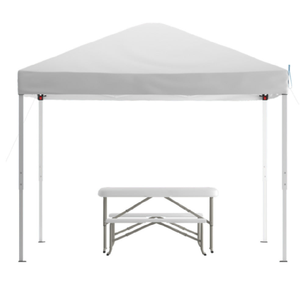 Flash Furniture JJ-GZ10103-WH-GG Knox Pop-up Canopy Tent And Folding Bench Set - 1/Set