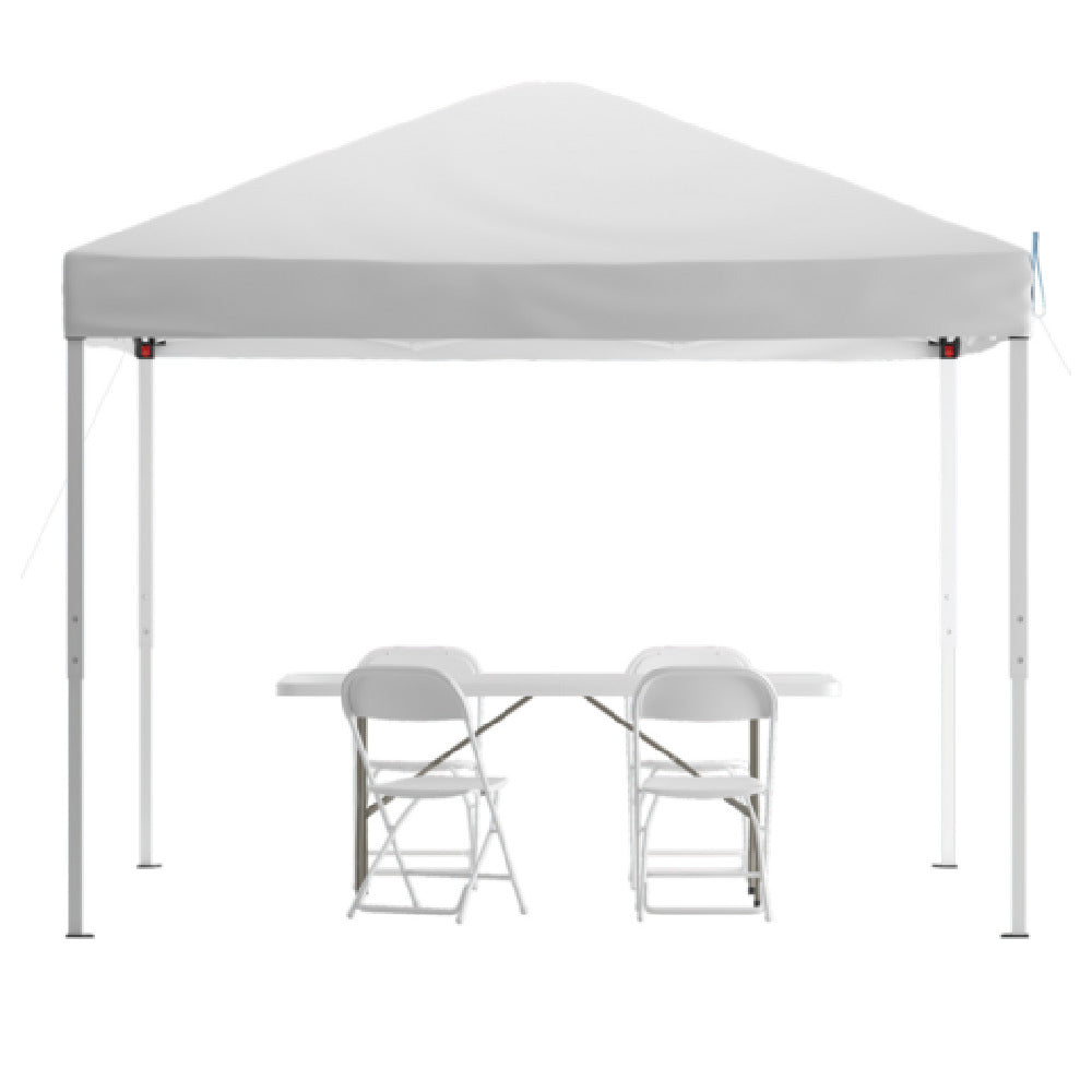 Flash Furniture JJ-GZ10183Z-4LEL3-WHWH-GG Otis Pop-up Canopy Tend And Folding Chair Set - 1/Set
