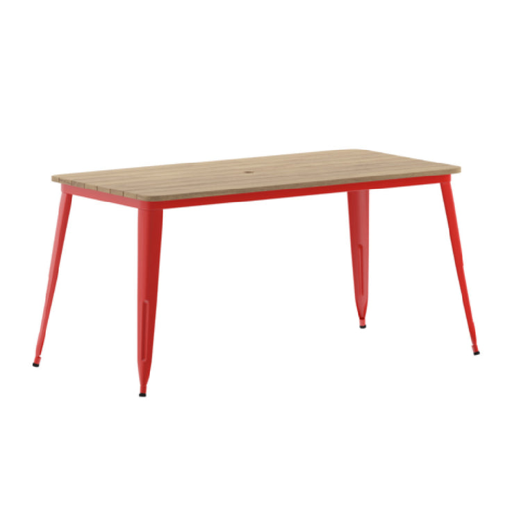 The Flash Furniture JJ-T146120-BRRD-GG Declan Dining Table stands as an excellent choice for those seeking a versatile and robust dining solution. Measuring 60 inches in width, 30 inches in depth, and 30 inches in height, this rectangular dining table is designed for functionality and style. It boasts an impressive weight capacity of 500 pounds, making it suitable for both residential and commercial use. The table is equipped with an umbrella hole, enhancing its utility for outdoor settings. Crafted with a poly resin table top and supported by a powder-coated steel frame, it offers durability and resistance to various elements. Stainless steel hardware further ensures longevity and stability. The inclusion of adjustable floor glides allows for seamless placement on uneven surfaces, enhancing its adaptability in different environments. Available in a sophisticated brown/red color scheme, this table complements both indoor and outdoor spaces, making it an ideal addition to diverse market segments, from hospitality venues to home patios. Its blend of sturdy construction and elegant design highlights its unique value proposition, offering buyers a reliable and stylish dining table option.