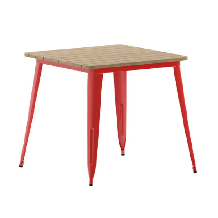 The Flash Furniture JJ-T14619-80-BRRD-GG Declan Dining Table is a versatile piece designed for both indoor and outdoor environments. With dimensions of 31-1/2" wide, 31-1/2" deep, and 30" high, it offers a compact yet functional space suitable for various settings. This square dining table is constructed with a poly resin tabletop, providing durability and a modern aesthetic. The powder-coated steel frame adds strength and stability, supporting a weight capacity of up to 300 lbs. Stainless steel hardware ensures long-lasting performance, while the adjustable floor glides allow for easy leveling on uneven surfaces, enhancing its usability across different environments. Available in an appealing brown/red finish, the table's design marries style with practicality, making it an ideal choice for homeowners looking to upgrade their dining area, as well as businesses in the hospitality industry seeking durable and stylish furnishings. Its robust construction and adaptable design make it a valuable addition to patio settings, cafes, or compact dining spaces, providing consistent performance with a touch of elegance.