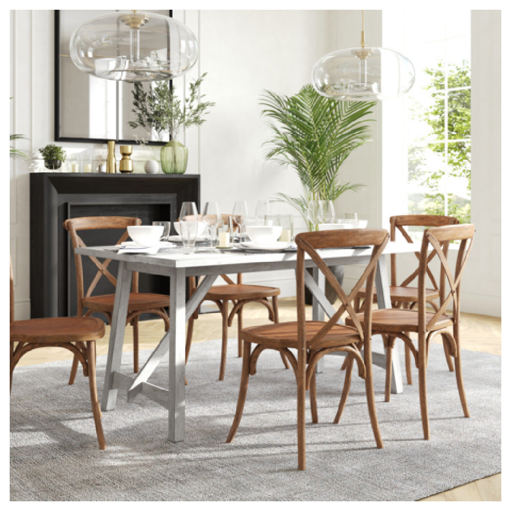 The Flash Furniture KER-T-851-WHT-60-GG Everly Dining Table is a 60"L rectangular table designed to comfortably seat six people, embodying a farmhouse style that suits both commercial and residential settings. Constructed from solid wood, this table boasts an antique white finish, lending a touch of rustic elegance to any dining space. It is built to commercial grade standards, ensuring durability and longevity for high-traffic environments, making it a practical choice for restaurants, cafes, and hospitality venues that require robust furniture solutions. The substantial size and sturdy build cater to diverse needs, whether for intimate family gatherings or professional settings requiring reliable dining arrangements. The Everly Dining Table’s combination of aesthetic charm and functional construction makes it an attractive option for those seeking a balance between style and utility. Its ability to blend seamlessly into various decor themes, coupled with its solid wood craftsmanship, highlights its unique value proposition for different market segments. Whether enhancing a cozy home dining area or elevating the ambiance in a bustling bistro, this table offers a harmonious blend of form and function that is both timeless and versatile.