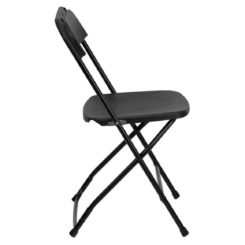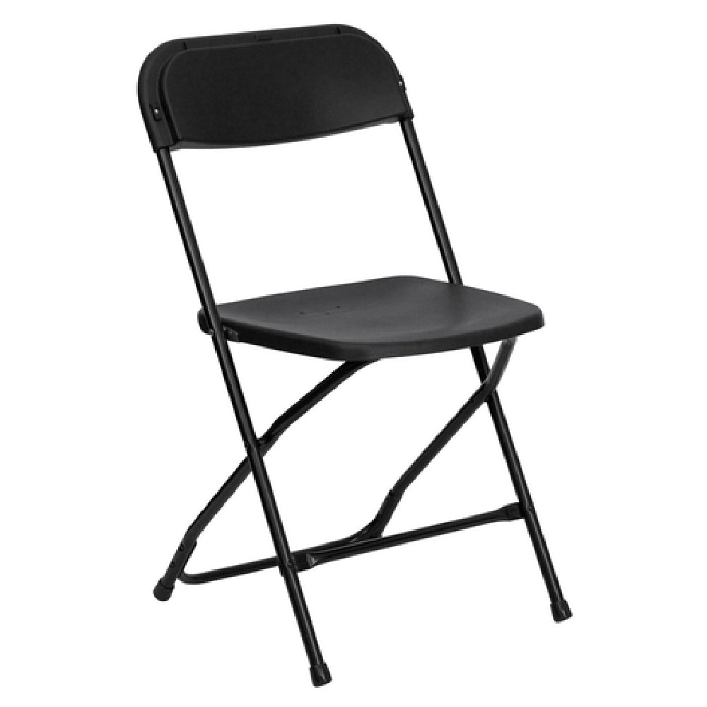 The Flash Furniture LE-L-3-BK-GG Hercules Series Premium Folding Chair is a versatile seating solution that perfectly balances durability and practicality. With a remarkable weight capacity of 650 lbs, this chair is engineered to support diverse needs across commercial and residential settings. Its lightweight design is complemented by a contoured plastic back and seat, ensuring comfort and ease of use. The textured seat includes drain holes, adding functionality for both indoor and outdoor environments. The chair's stability is enhanced by double support rails, and its 18-gauge steel frame is finished with a black powder coating to resist wear and tear. Non-marring floor caps protect surfaces from scratches, while the space-saving nesting design facilitates efficient storage when not in use. Ideal for events, meetings, or casual gatherings, this folding chair can be shipped within 24 hours of ordering, adding convenience for those in need of immediate seating solutions. The black finish lends a sleek, professional appearance, making this chair suitable for a range of occasions and settings.
