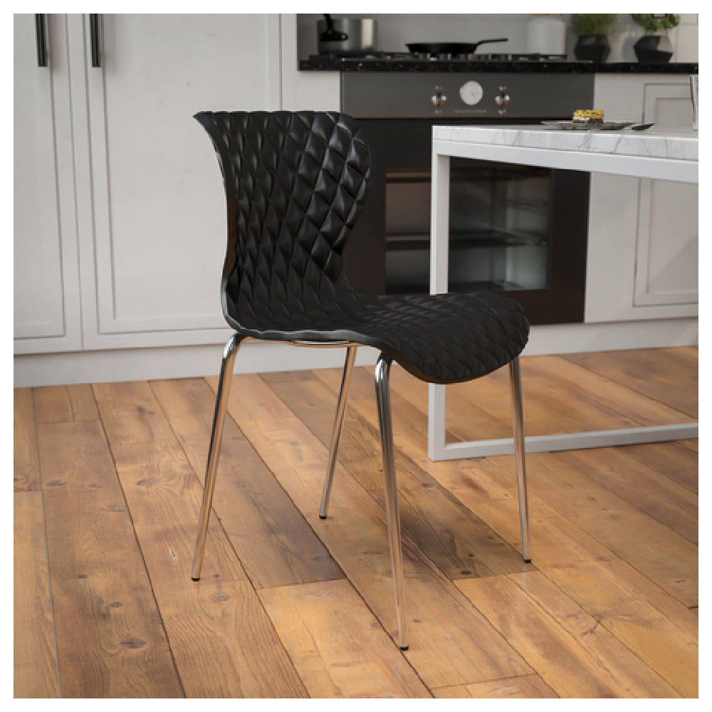 The Flash Furniture LF-7-07C-BLK-GG Lowell Chair is a practical and versatile seating solution with a stacking capability that enhances space efficiency in various environments. This chair supports up to 265 lbs, making it suitable for a wide range of users in different settings such as offices, conference rooms, and educational institutions. The chair features a durable plastic back and seat, ensuring comfort and easy maintenance, while the chrome frame finish adds a sleek and modern aesthetic appeal. Its black color complements diverse decors and provides a professional look. The stackable design of the Flash Furniture LF-7-07C-BLK-GG allows for convenient storage and quick setup, making it an ideal choice for venues that require flexibility in seating arrangements. This chair's robust construction ensures long-lasting performance, catering to both small and large-scale seating needs. With its combination of functionality, durability, and stylish design, the Flash Furniture LF-7-07C-BLK-GG Lowell Chair is an excellent choice for anyone looking for reliable and adaptable seating options.