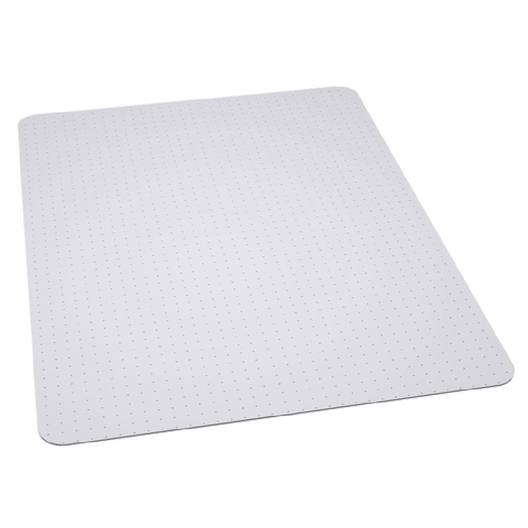 The Flash Furniture MAT-121704-GG Chair Mat is crafted with precision, featuring dimensions of 36"W x 48"D x 2/25"H and a straight-edge design. This chair mat is specifically constructed for low pile carpet settings, providing an excellent protective layer that prevents carpet wear and tear in high-traffic areas. The scuff and slip-resistant textured top surface ensures stability, preventing unwanted movements of chairs or other furniture pieces. Equipped with a studded gripper back, this mat effectively secures its position, minimizing the need for frequent adjustments. Made from durable vinyl material, the clear design seamlessly blends into any office or home environment without compromising aesthetics. Proudly manufactured in the USA, the Flash Furniture MAT-121704-GG Chair Mat embodies quality and reliability, making it an essential addition for those looking to preserve their flooring while maintaining an efficient and professional workspace. This product serves various market segments, including corporate offices, home offices, and educational institutions, offering a practical solution for extending carpet life and enhancing mobility across different surfaces.