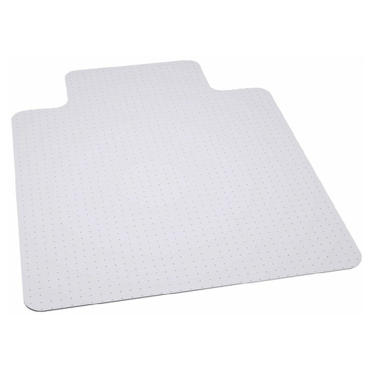The Flash Furniture MAT-124086-GG Big & Tall Chair Mat is engineered for durability and strength, accommodating up to 400 lb., making it ideal for various professional environments. With dimensions of 36”W x 48”D x 1/5”H, this chair mat is designed to cater to larger chairs and users, providing ample coverage and support. The mat features a 19”W x 9-3/4”L lip that fits perfectly under desks, ensuring additional floor protection. Its straight edge design, combined with a scuff and slip resistant textured top surface, offers stability and safety, reducing the risk of accidental slips. The chair mat's studded gripper back is specifically designed for medium to high pile carpets, ensuring it stays firmly in place during use, even in multi-shift workplaces. Made from clear vinyl, this mat seamlessly blends into any office decor while providing essential protection for carpeted surfaces. Proudly manufactured in the USA, the Flash Furniture MAT-124086-GG Big & Tall Chair Mat is an excellent choice for businesses looking to enhance their office environment with a product that offers both functionality and aesthetic appeal. In-stock items typically ship within 24 hours, providing quick and efficient service for your business needs.