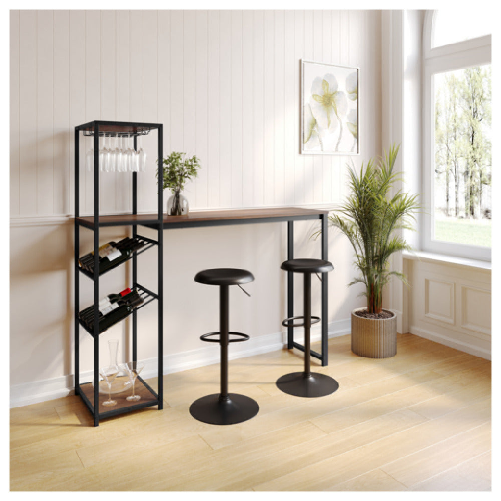 Flash Furniture NAN-F-HY-B23102-BLKWLN-GG Jura Bar & Wine Table With (2) Slanted Shelves