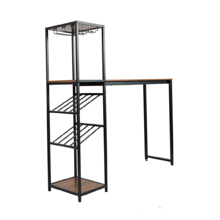 The Flash Furniture NAN-F-HY-B23102-BLKWLN-GG Jura Bar & Wine Table with (2) slanted shelves is a multifunctional piece ideal for both residential and commercial settings. This table features a robust black metal frame, providing a solid foundation that ensures durability and stability. The walnut melamine tabletop adds a touch of elegance, offering a sleek and sophisticated appearance that complements any décor. Uniquely designed with two slanted shelves, this table caters to both bottle storage and hanging glass storage needs, making it an efficient solution for organizing your bar or wine collection. These shelves not only optimize storage space but also create a visually appealing display for wine enthusiasts. The Jura Bar & Wine Table is perfect for homeowners looking to enhance their kitchen or dining areas, as well as for restaurant and bar owners aiming to provide an organized and stylish environment for patrons. Its compact design allows for versatile placement without sacrificing functionality, making it a valuable addition to any space where efficient storage and display are paramount. The Flash Furniture table stands out in the market by combining practical storage solutions with an aesthetic design, catering to the diverse needs of wine lovers and hospitality professionals alike.