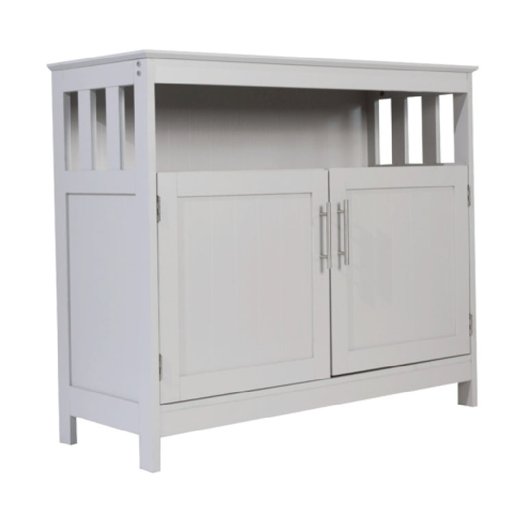 Flash Furniture NAN-F-HY-B23108-GRY-GG Mayfield Classic Buffet and Sideboard Cabinet is a versatile storage solution designed for various settings such as dining rooms, kitchens, or living areas. The cabinet measures 40 inches, providing ample space to accommodate your storage needs. It features a top open storage shelf, perfect for displaying decorative items or keeping frequently used items within easy reach. The bottom double door storage cabinet offers additional space to store essentials securely, making it an ideal choice for organizing and decluttering your space. This cabinet is finished in a sophisticated gray color, which complements a wide range of interior styles and color schemes. Its practical design is suitable for different market segments, from homeowners seeking functional furniture to small business owners needing stylish storage solutions. The combination of open and closed storage makes it highly adaptable to various uses, ensuring that it can meet the diverse requirements of different users. Its elegant and timeless design adds aesthetic value while maintaining its focus on functionality, making the Flash Furniture Mayfield Classic Buffet and Sideboard Cabinet a valuable addition to any space.