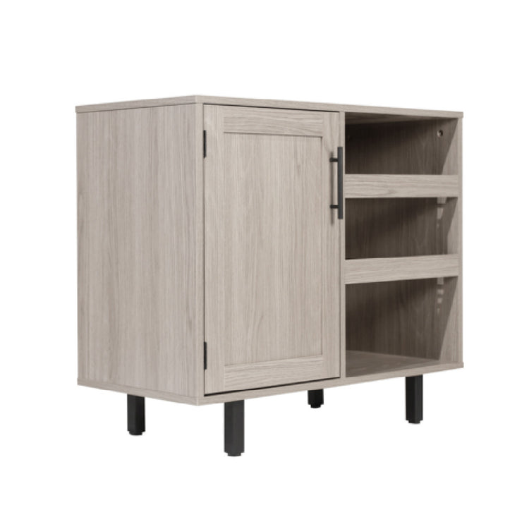 The Flash Furniture NAN-F-HY-B23113-GRY-GG Elmont Classic Bar and Sideboard Cabinet is a versatile storage solution designed with a shaker style single door cabinet, ideal for organizing dining essentials. This cabinet features hanging glass storage, providing a secure and stylish way to store stemware, making it an excellent choice for both home users and hospitality businesses. The open bottle shelves offer easy access and display of your favorite spirits, enhancing both functionality and aesthetics. Finished in a sophisticated gray, this cabinet seamlessly blends with various interior décors, catering to modern and classic tastes alike. Its thoughtful design caters to different markets, such as residential users looking to elevate their home bar experience, or commercial establishments aiming to optimize space and presentation. The Elmont Classic Bar and Sideboard Cabinet combines practicality with elegance, making it a noteworthy addition to any setting that values both storage efficiency and style.