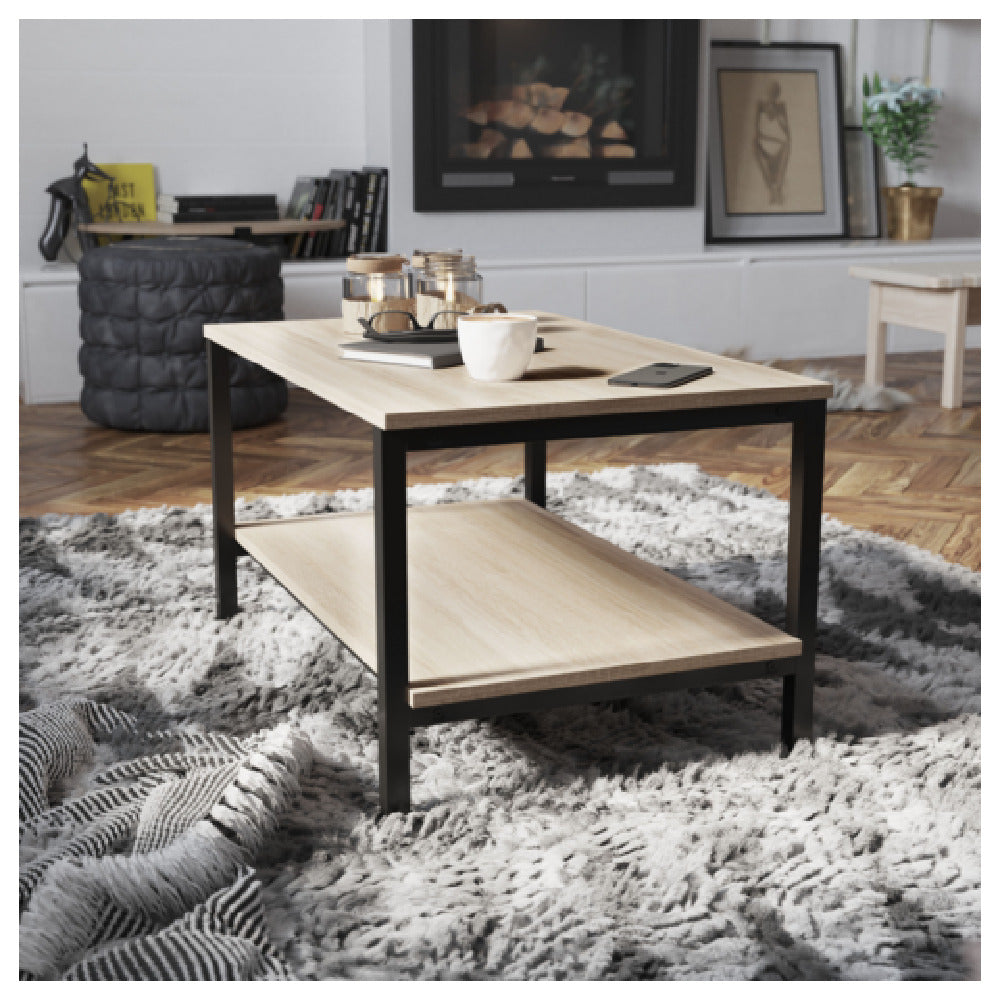 Flash Furniture NAN-JH-17163-GG Finley Modern Industrial 2 Tier Rectangular Metal And Driftwood Coffee Table