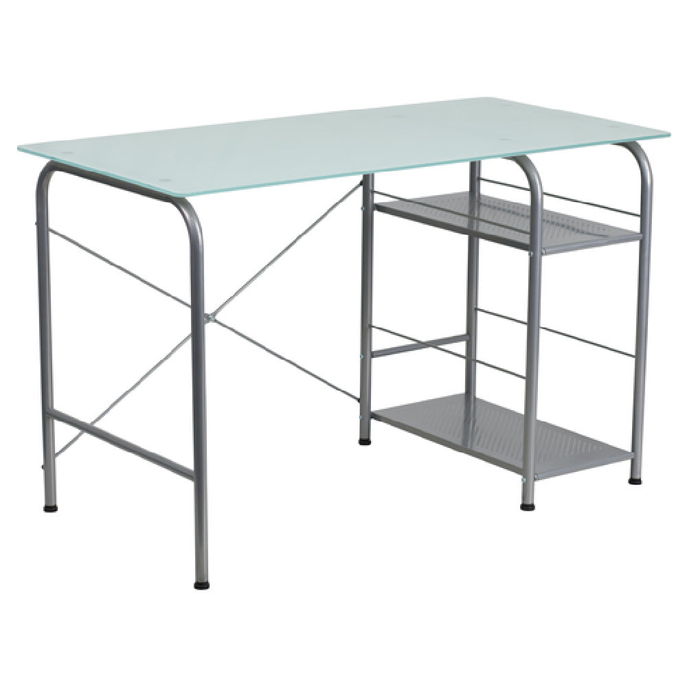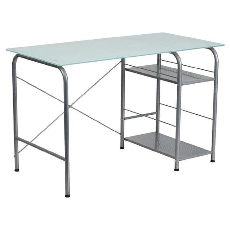 Flash Furniture NAN-WK-086-GG Computer Desk 47-1/4"W X 23-1/2"D X 29-1/2"H Silk White Tempered Glass Top