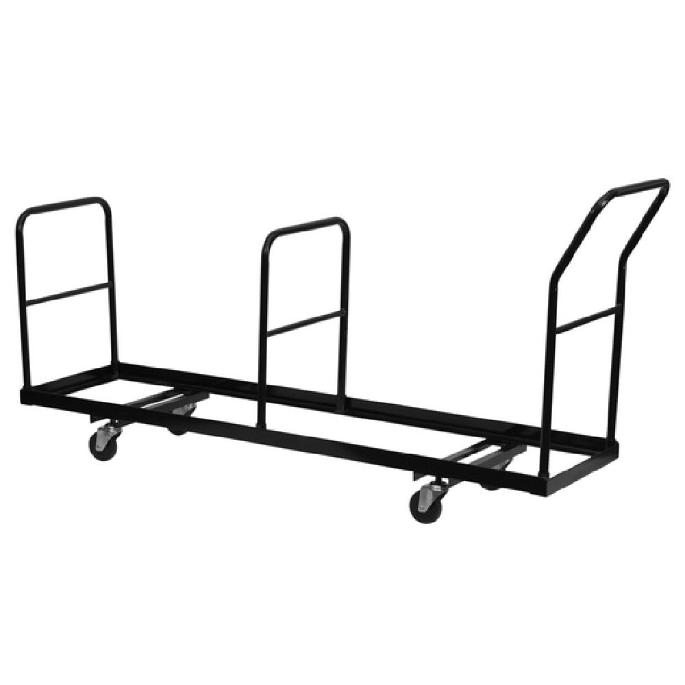 The Flash Furniture NG-DOLLY-309-35-GG Folding Chair Dolly is a practical solution for organizing and transporting metal folding chairs in commercial settings. With dimensions of 19-1/4"W x 75-1/2"D x 40"H, this robust dolly can support up to 35 metal folding chairs, maintaining them in an upright position for efficient space utilization and accessibility. Its construction features a 1/8" thick L-shaped steel frame, ensuring durability and strength, complemented by a powder-coated finish for enhanced protection against wear and tear. Designed with user convenience in mind, it includes three 1" round tubular handles, offering a firm grip and easy maneuverability. The dolly is equipped with dual support braces, adding extra stability during transport. It also boasts four 4" polyolefin swivel casters, enabling smooth and versatile mobility across different floor surfaces. This product requires assembly upon delivery, but stock items are typically shipped within 24 hours, ensuring timely availability for urgent needs. Aimed at industries that frequently utilize folding chairs, such as event management, conference centers, and hospitality venues, the Flash Furniture NG-DOLLY-309-35-GG offers a reliable, efficient, and sturdy solution to streamline chair storage and transportation processes.
