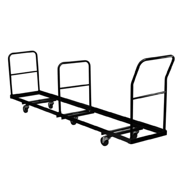 Flash Furniture NG-DOLLY-309-50-GG Folding Chair Dolly is a specialized equipment designed to streamline the transportation and storage of folding chairs in commercial settings. This dolly supports up to 50 metal folding chairs in an upright position, providing a practical solution for event organizers, schools, and conference centers that require efficient chair management. With dimensions of 19-1/2 inches in width, 105 inches in depth, and 40-1/4 inches in height, it offers substantial capacity without compromising on maneuverability. The dolly is equipped with three 1-inch round tubular handles, ensuring a firm grip and ease of handling during transportation. Its robust construction features a 1/8-inch thick L-shaped steel framework, complemented by a powder-coated finish for enhanced durability and resistance to wear. The inclusion of five 4-inch polyolefin swivel casters facilitates smooth movement across various surfaces, making it ideal for varied commercial environments. This product requires assembly, ensuring a tailored setup suited to the user's specific needs. Available in black and generally ready for dispatch within 24 hours for in-stock items, the Flash Furniture NG-DOLLY-309-50-GG is a practical choice for organizations seeking reliable and efficient chair logistics solutions.
