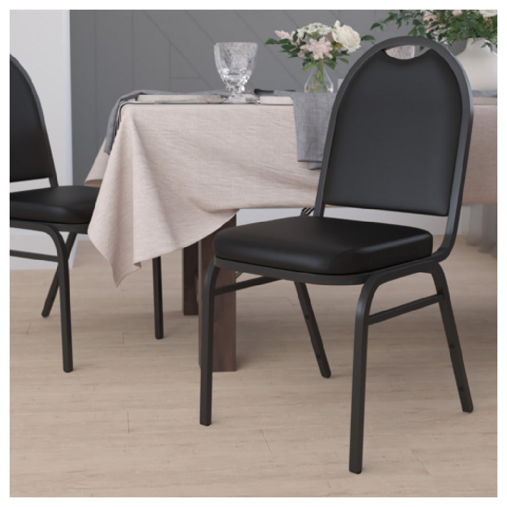 Flash Furniture NG-ZG10006-BK-BK-GG HERCULES Series Commercial Grade 500 LB. Capacity Dome Back Stacking Banquet Chair In Black Vinyl With Black Metal Frame