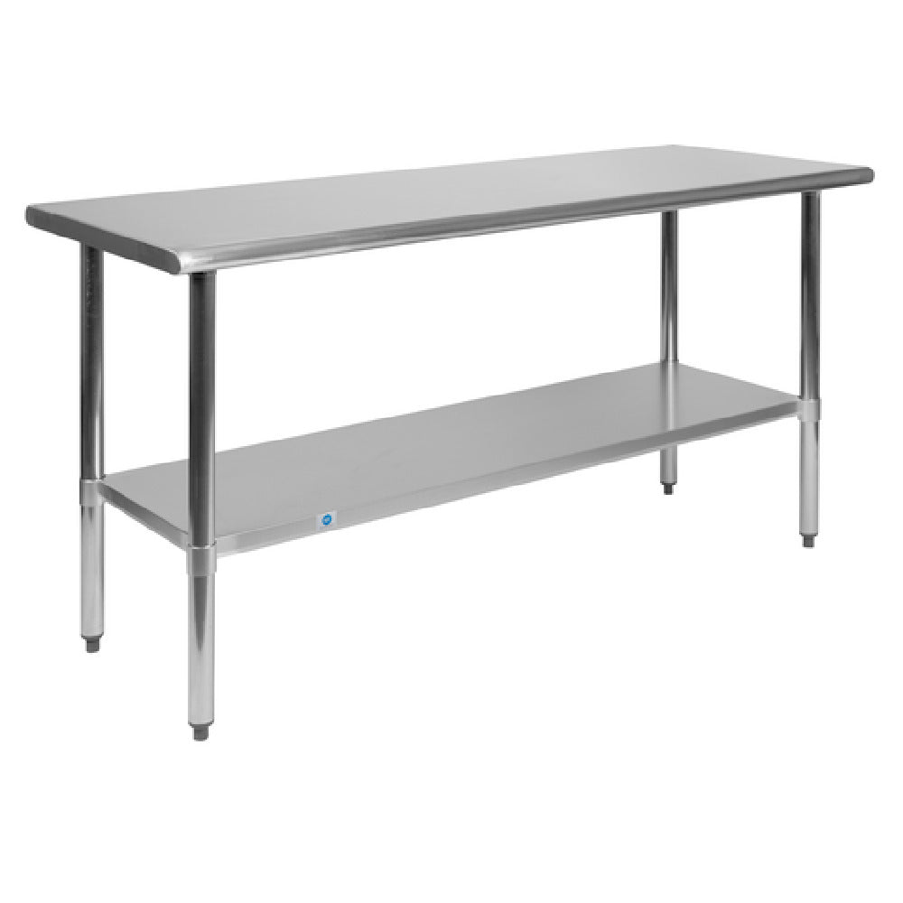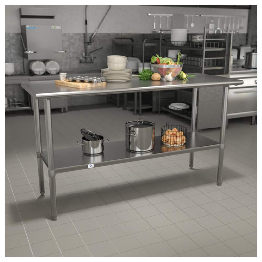 The Flash Furniture NH-WT-2460-GG Prep And Work Table is a versatile addition to any professional kitchen environment, measuring 60 inches in width, 24 inches in depth, and 36 inches in height. This table is engineered with an 18-gauge stainless steel top, providing durability and resistance to corrosion, making it an ideal choice for food preparation and other culinary tasks. It features an undershelf for additional storage, maximizing space efficiency in busy kitchen settings. The undershelf is adjustable, allowing for customizable storage solutions to accommodate a variety of kitchen tools and ingredients. NSF Certification ensures that this work table meets strict public health standards, making it a reliable asset in maintaining hygiene and safety in food service operations. Its design and materials support rigorous daily use, making the Flash Furniture NH-WT-2460-GG suitable for restaurants, catering services, and industrial kitchens where durability and functionality are paramount. This prep and work table is tailored for those who seek a combination of robust construction and versatile design in their kitchen equipment.