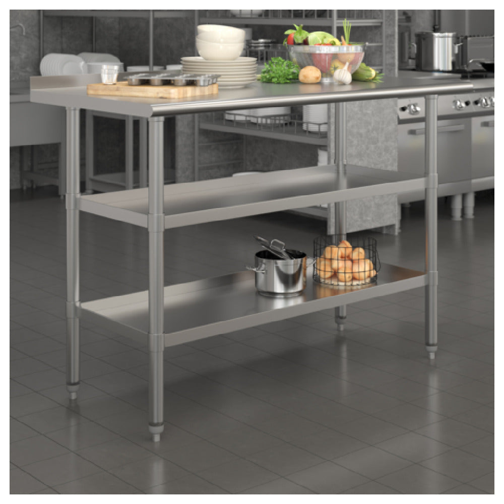 Flash Furniture NH-WT-GU-2448BSP-GG Hogan Stainless Steel 18 Gauge Work Table With 1.5" Backsplash And 2 Undershelves 48"W X 24"D X 36"H