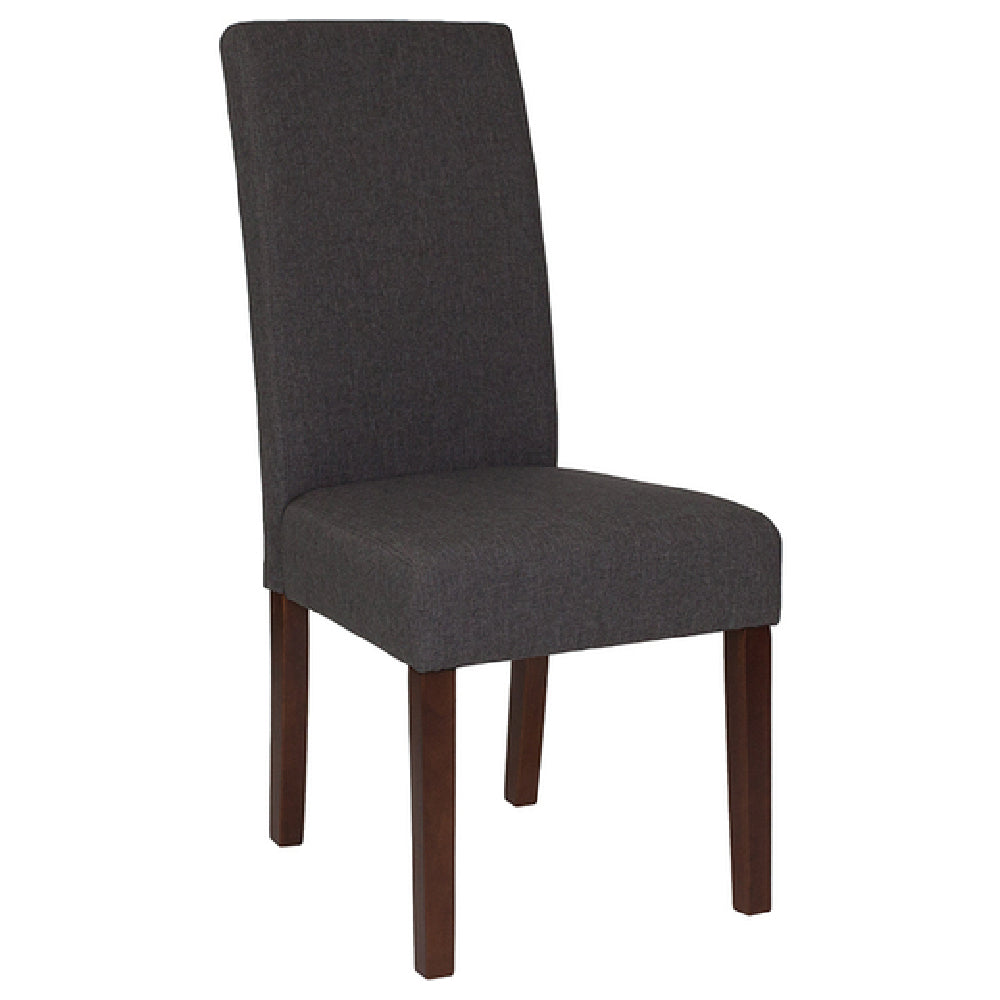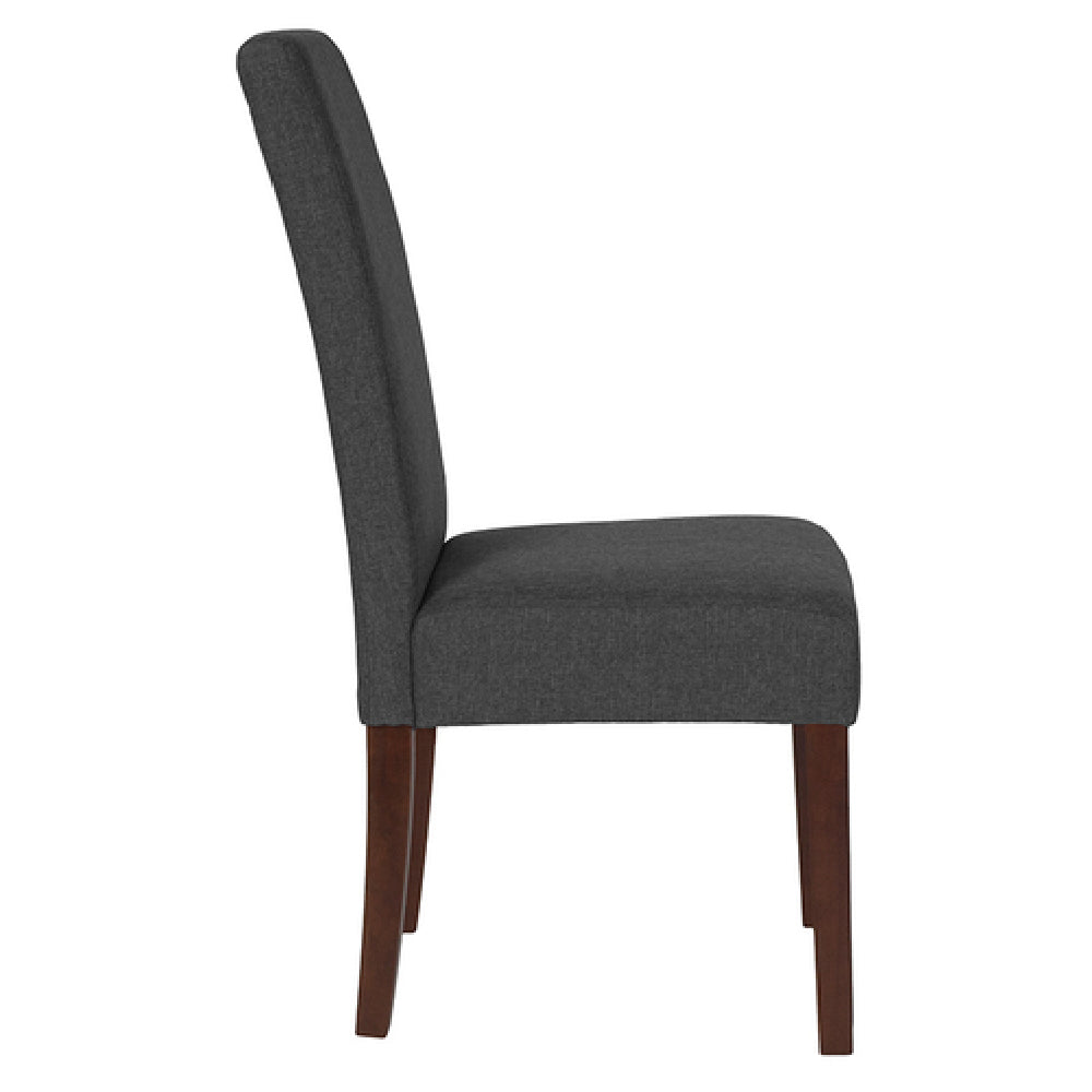 The Flash Furniture QY-A37-9061-GY-GG Greenwich Series Mid-century Design Fabric Upholstered Back & Seat is a sophisticated seating option that seamlessly blends style and comfort. This chair features a mid-century design, highlighted by its fabric upholstery in a versatile gray color, which adds a touch of elegance to any residential setting. Its construction includes high-density CA117 fire retardant foam padding, ensuring safety and comfort for prolonged use. The solid hardwood frame provides durability and stability, complemented by mahogany wood legs that enhance its aesthetic appeal. Designed exclusively for residential use, this chair is equipped with protective plastic floor glides to prevent damage to flooring surfaces. This makes it an excellent choice for homeowners who value both style and functionality in their furniture. The chair's design, combined with its robust construction, ensures it can cater to diverse interior decor needs, making it a unique addition to living rooms, study areas, or any space requiring a classic yet modern seating solution.