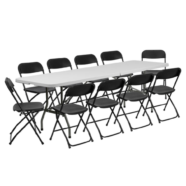 Flash Furniture RB-3096F-10-LEL3-BK-GG Folding Table And Folding Chairs Set 8'W - 1/Set