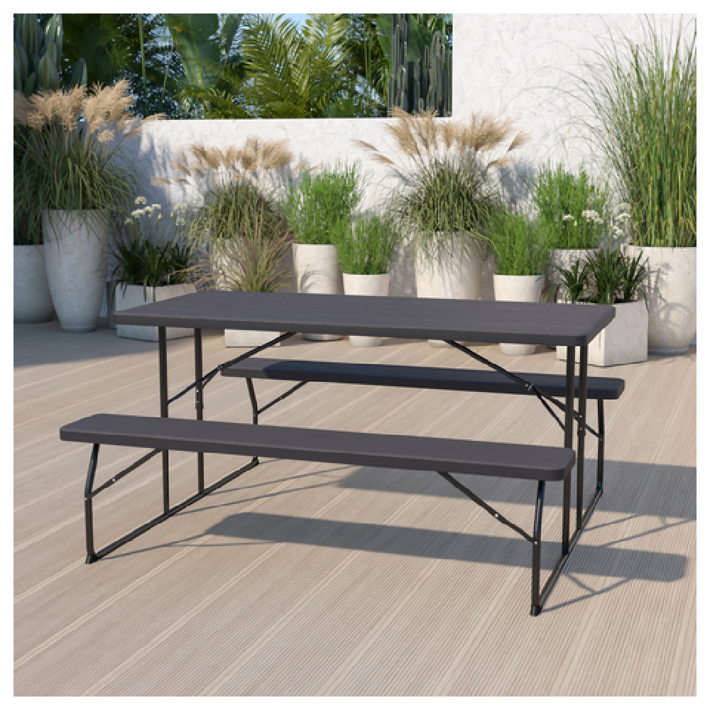 Flash Furniture RB-EBB-1470FD-GG Insta-Fold Folding Picnic Table & Benches 53-3/4"W X 58-1/4"D X 28-1/4"H