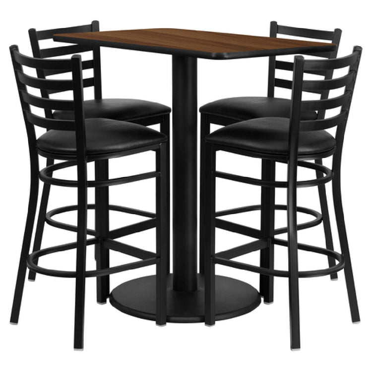 - Includes (1) 24"W x 42"D x 42"H table and (4) bar stools