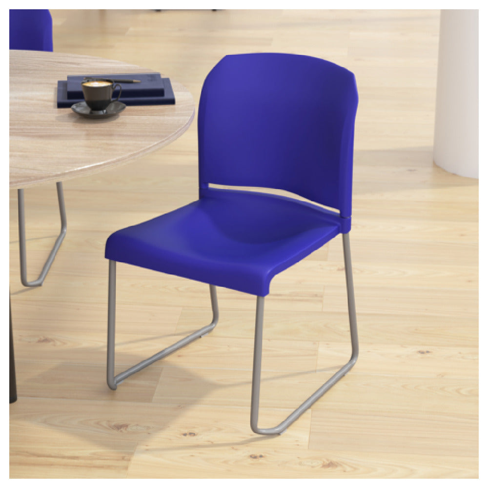 The Flash Furniture RUT-238A-BL-GG Hercules Series Contoured Stacking Chair is a versatile seating solution, designed to meet the rigorous demands of both indoor and outdoor commercial environments. With an impressive weight capacity of 880 lb., this chair is engineered to provide durability and support. It features an ergonomic design, incorporating a polypropylene seat and back that ensures comfort during prolonged use. The chair is built with a silver powder-coated metal sled base frame, offering stability and resistance to wear. It is equipped with plastic floor glides, protecting floors from scratches and facilitating easy movement. This model is capable of stacking up to five chairs high, optimizing storage space and enhancing its utility in dynamic settings. Available in a vibrant blue color, the chair is shipped fully assembled, streamlining the setup process. Quick shipping is assured, with in-stock items typically dispatched within 24 hours, making it a reliable choice for businesses seeking efficiency and expedience. The Flash Furniture Hercules Series Contoured Stacking Chair combines practicality with robust construction, making it an ideal choice for various market segments, including hospitality, education, and corporate environments.