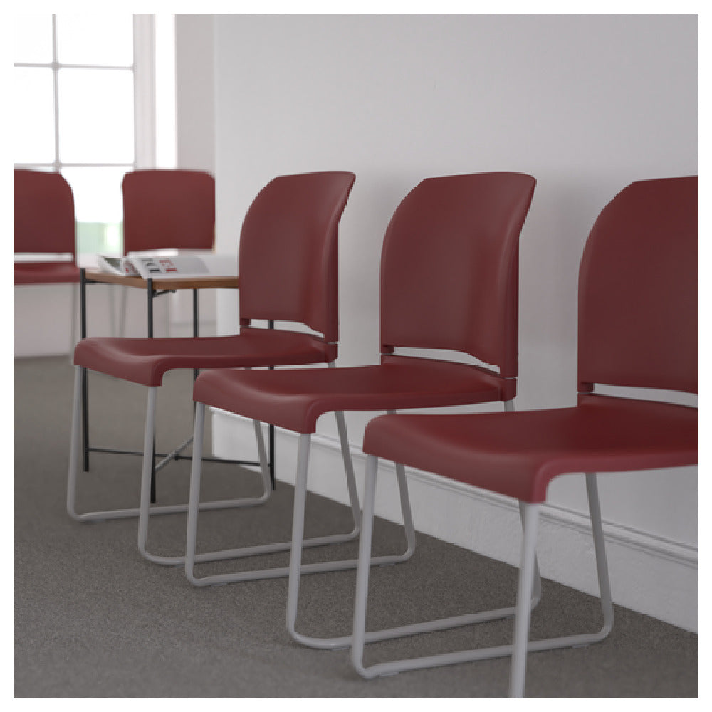 The Flash Furniture RUT-238A-BY-GG Hercules Series Reception Chair is a robust seating solution designed for high-capacity use, supporting an impressive weight limit of 880 lbs. This chair is part of the Hercules Series, known for its strength and durability, making it a perfect fit for various industry sectors that require reliable and sturdy seating. Engineered with a contoured design, it provides added comfort for users, while its polypropylene seat and back ensure long-lasting use and easy maintenance. The chair's metal frame, finished in a sleek gray color, complements its burgundy components, offering a professional and stylish appearance suitable for any reception area. With the inclusion of plastic floor glides, movement across different flooring surfaces is smooth and effortless, reducing the risk of damage to the floor. For those seeking a quick and hassle-free setup, this chair ships fully assembled, and in-stock items are usually dispatched within 24 hours, ensuring prompt delivery. The Flash Furniture RUT-238A-BY-GG is ideal for businesses and institutions that require seating solutions with a high weight capacity and a professional aesthetic, providing exceptional value across various market segments.