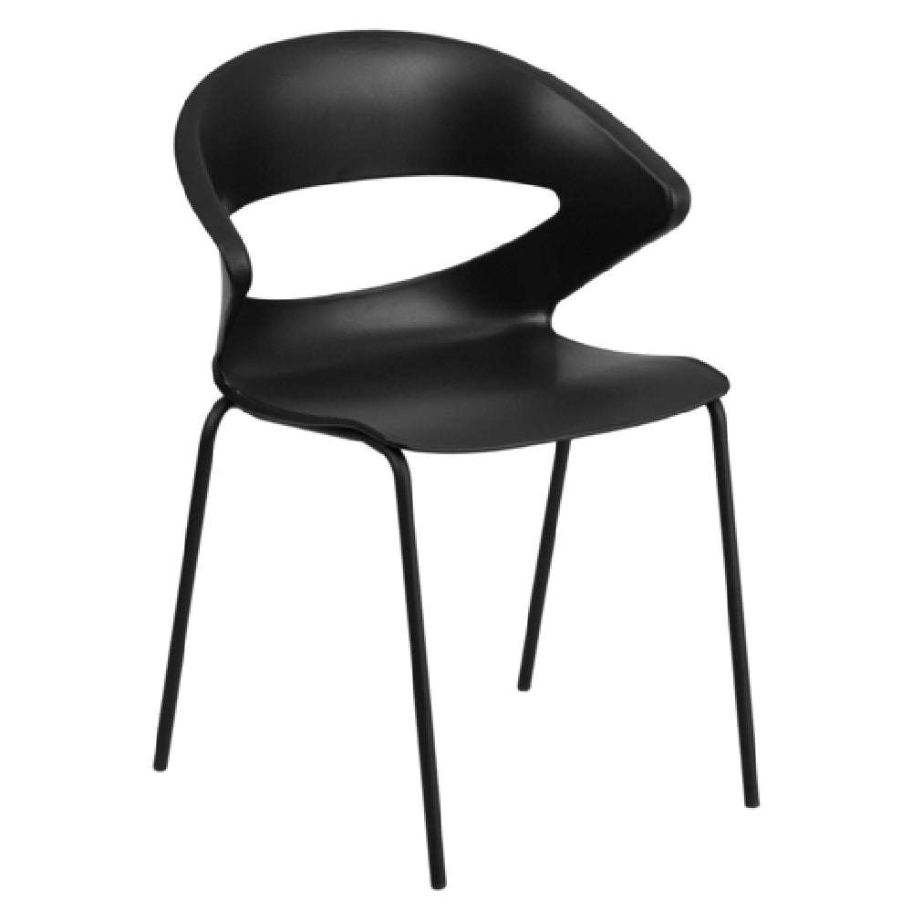 The Flash Furniture RUT-4-BK-GG Hercules Series Stacking Chair is designed with a notable weight capacity of 440 lb., making it an ideal choice for a wide range of commercial settings. This ergonomic chair features a plastic seat and back with a distinctive curved flex cutout back for enhanced comfort and support. Its black powder-coated metal frame provides robust durability, while the inclusion of plastic floor glides ensures smooth movement and protection for both floor surfaces and the chair itself. Specifically engineered for indoor and outdoor commercial use, this chair can effectively be stacked up to four chairs high, optimizing storage and space efficiency. Available in a sleek black finish, the chair ships fully assembled, offering convenience and immediate usability for businesses. With in-stock items typically shipping within 24 hours, the Flash Furniture RUT-4-BK-GG Hercules Series Stacking Chair serves as a versatile and reliable option for various market segments, including hospitality, education, and event venues, where durable and space-saving seating solutions are essential.
