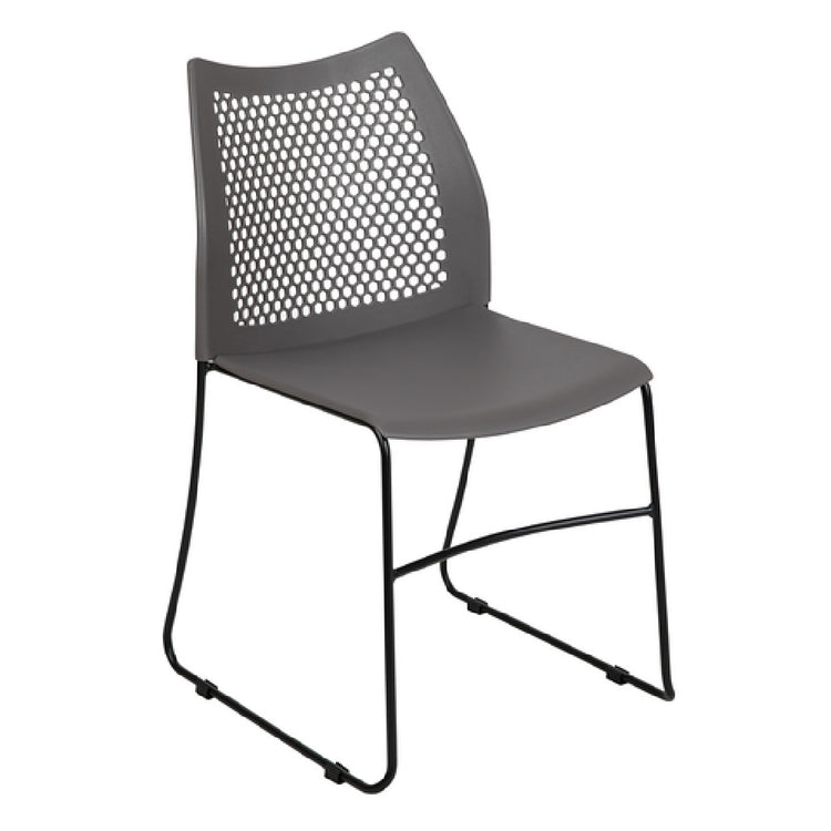 Flash Furniture RUT-498A-GY-GG Hercules Series Stacking Chair is a robust seating solution with a remarkable weight capacity of 661 pounds, making it suitable for a variety of environments, including both indoor and outdoor commercial settings. This chair features an ergonomic design with a plastic seat and back, ensuring comfortable seating. The perforated back enhances airflow for added comfort, while the supportive front cross brace provides additional stability. Its black powder-coated metal sled base frame ensures durability and a sleek appearance. Equipped with plastic floor glides, the chair is designed to protect floors from scratches. One of its notable features is the ability to stack up to 5 chairs high, maximizing space efficiency when not in use. Available in gray, this chair ships fully assembled, offering convenience and immediate usability. Furthermore, in-stock items typically ship within 24 hours, catering to businesses with urgent needs. This chair is ideal for the hospitality industry, educational institutions, and corporate environments seeking durable and versatile seating options.