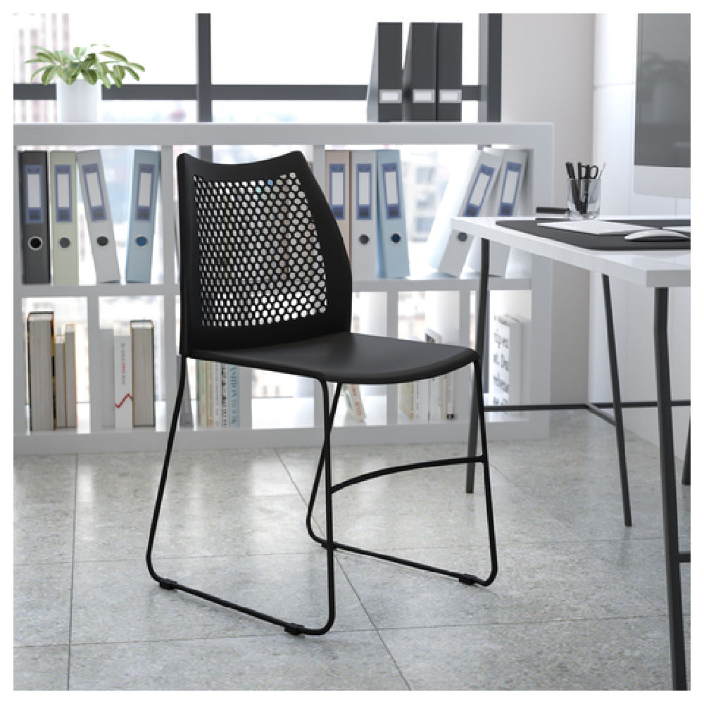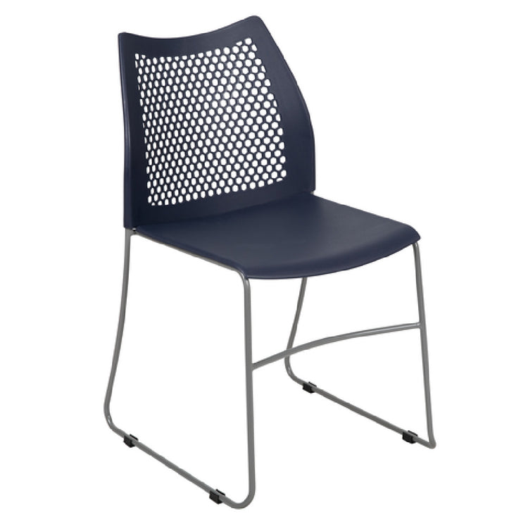 The Flash Furniture RUT-498A-NY-GG Hercules Series Stacking Chair, with its 661 lb. weight capacity, stands out as a versatile seating solution for diverse environments. This chair features an ergonomic design with a durable plastic seat and back, providing comfort for extended use. The perforated back enhances airflow, making it suitable for long hours in both indoor and outdoor settings. A supportive front cross brace adds strength, while the gray powder-coated metal sled base frame ensures stability. Plastic floor glides protect flooring surfaces, making it practical for commercial use. This chair is designed to stack up to 5 chairs high, optimizing storage space when not in use. Available in an appealing navy blue, it arrives fully assembled for immediate use. Ideal for various sectors, from hospitality to educational institutions, the RUT-498A-NY-GG Hercules Series chair combines functionality with robust construction, ensuring long-lasting performance. In-stock items generally ship within 24 hours, catering to time-sensitive purchase needs.