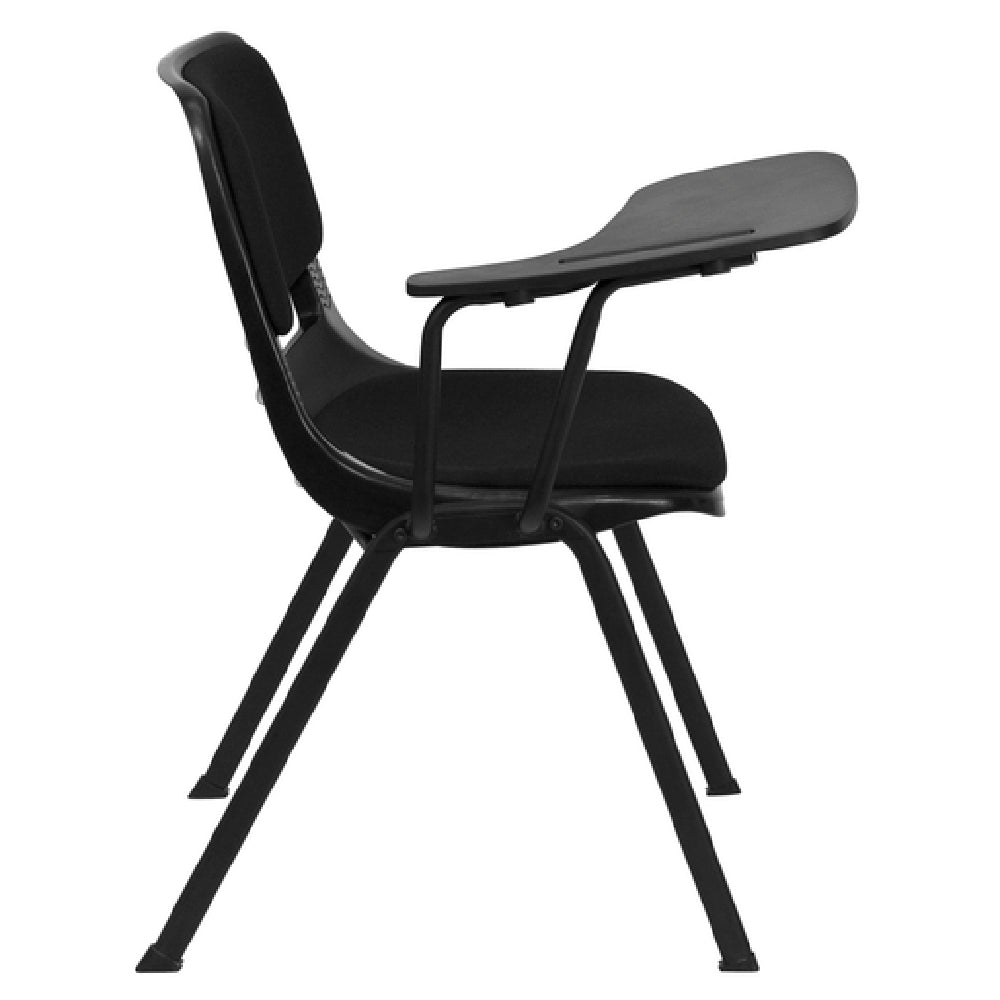 The Flash Furniture RUT-EO1-01-PAD-RTAB-GG Hercules Series Ergonomic Shell Chair is engineered for robust performance with a remarkable 880 lb. weight capacity, ideal for various professional settings such as educational institutions, conference rooms, and training facilities. This versatile chair features a 12”W x 17”D flip-up right-handed plastic tablet arm, complete with a pencil groove, providing convenient workspace integration. Its padded seat and back are designed for comfort, utilizing CA117 fire retardant foam for enhanced safety. The chair's vented back promotes airflow, ensuring user comfort over extended periods. Constructed with double support rails and a black powder-coated metal frame measuring 15 x 30 x 1.2 mm in gauge, the chair offers outstanding durability and stability. Plastic floor glides protect flooring surfaces, and assembly is required upon delivery. Typically, in-stock items ship within 24 hours, ensuring prompt availability for time-sensitive needs. This ergonomic chair is a practical and durable seating solution, meeting the demands of high-traffic environments while providing comfort and safety for users. Its thoughtful design and robust features make it suitable for a wide range of applications within the industry.