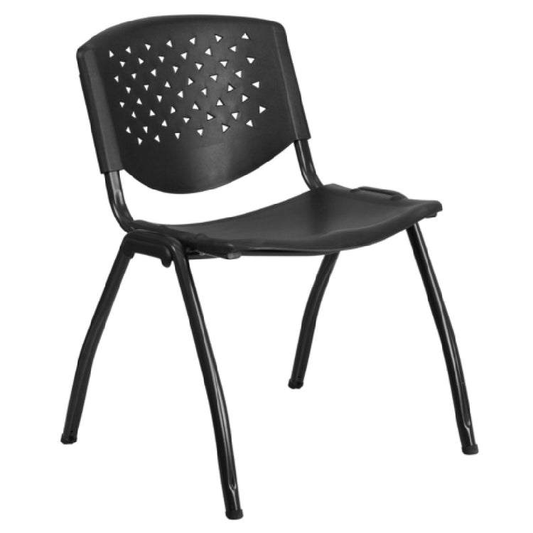 The Flash Furniture RUT-F01A-BK-GG Hercules Series Stacking Chair boasts an impressive 880 lb. weight capacity, making it a standout choice for various commercial environments requiring durable seating solutions. This ergonomic chair features a polypropylene seat and back, designed to provide comfort during extended use. The perforated back contributes to improved airflow, enhancing user comfort. With a textured seat and a robust titanium powder-coated metal frame, this chair is engineered for long-term resilience. The frame is constructed with a 25 x 1.2mm metal gauge, ensuring superior strength and stability. Additionally, plastic floor glides are included to protect floors and facilitate easy movement. Designed for both indoor and outdoor commercial use, the chair can be stacked up to 25 chairs high, optimizing storage space and ease of transportation. The sleek black design ensures it integrates seamlessly into various settings, from conference rooms to outdoor events. Moreover, this chair ships fully assembled, providing immediate utility upon delivery. The Flash Furniture RUT-F01A-BK-GG is an ideal choice for businesses seeking a reliable and space-efficient seating option that combines practical design with high capacity and durability.