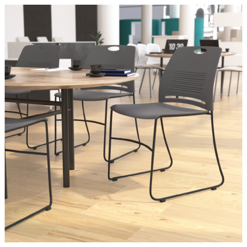 Flash Furniture RUT-NC499A-GY-GG HERCULES Series Commercial Grade 660 Lb. Capacity Gray Plastic Stack Chair With Black Powder Coated Sled Base Frame And Integrated Carrying Handle