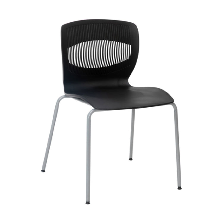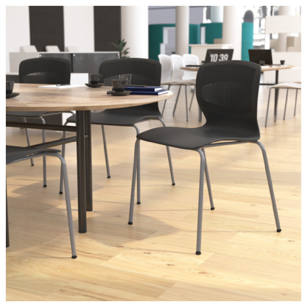 Flash Furniture RUT-NC618-BK-GG HERCULES Series Commercial Grade 770 Lb. Capacity Ergonomic Stack Chair With Lumbar Support And Silver Steel Frame Black