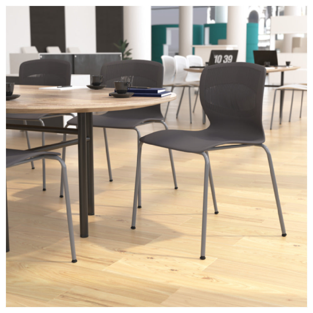 Flash Furniture RUT-NC618-GY-GG HERCULES Series Commercial Grade 770 Lb. Capacity Ergonomic Stack Chair With Lumbar Support And Silver Steel Frame Gray