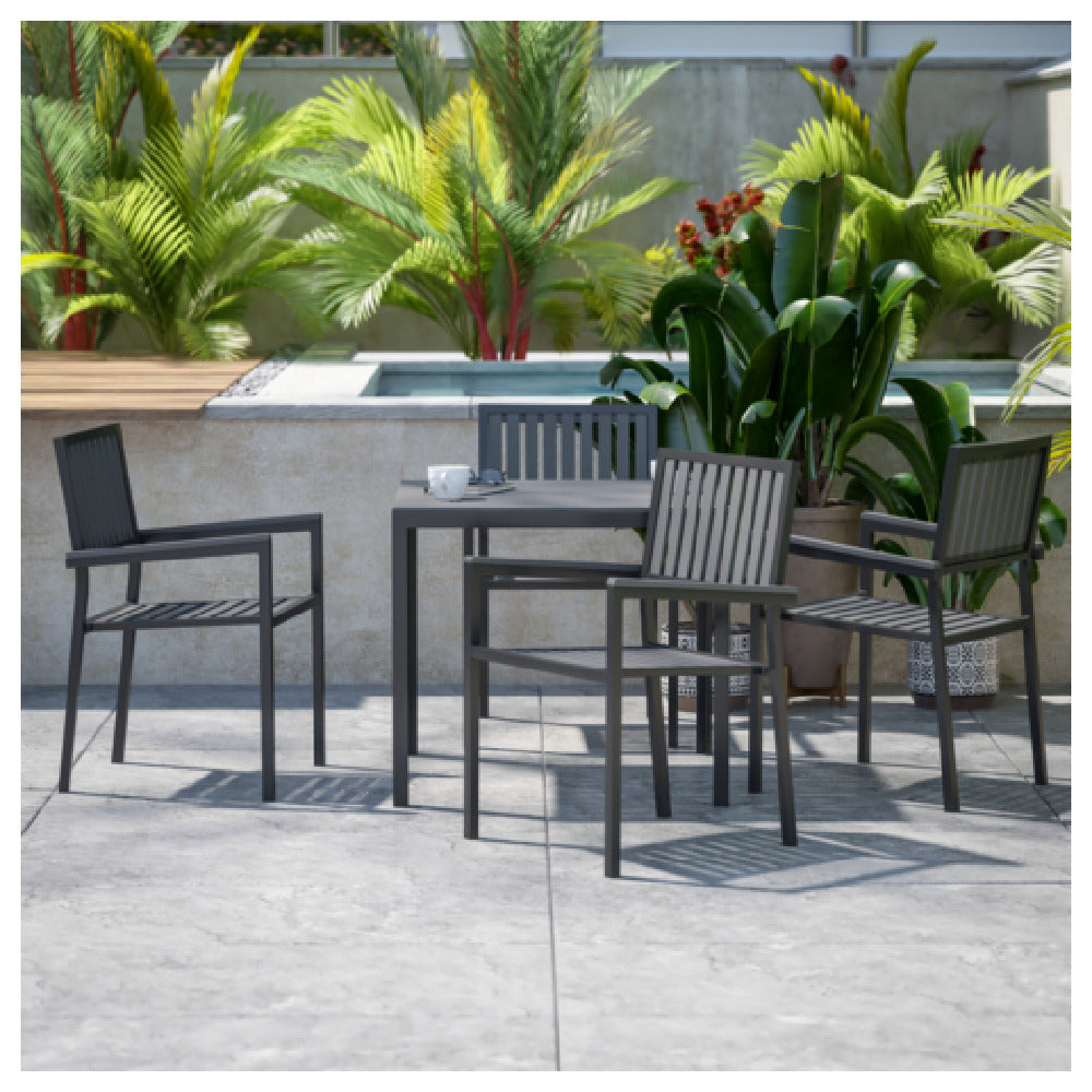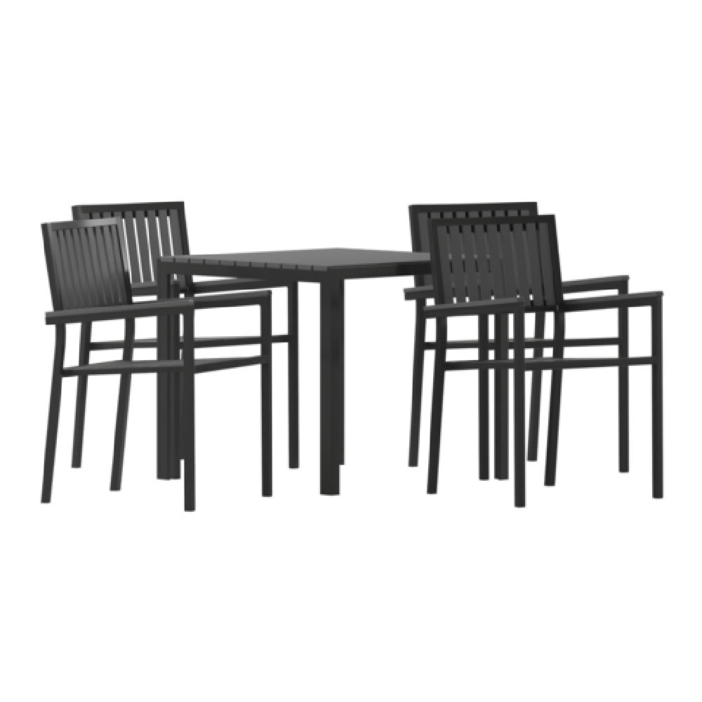 Flash Furniture SB-A268C4-T-BK-GG Harris 5 Piece Commercial Indoor/Outdoor Table And Chairs With Black Poly Resin Slatted Backs And Seats