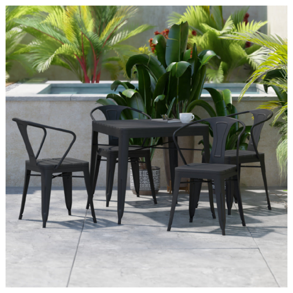 Flash Furniture SB-T11C4-T-BK-GG Helvey Commercial 5 Piece Indoor-Outdoor Table And Chairs