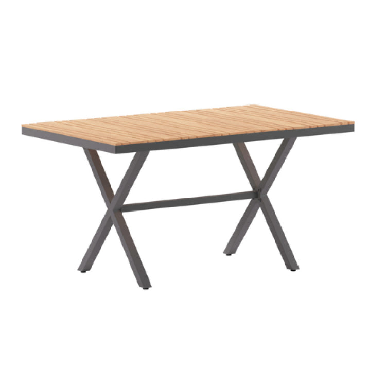 - Finch Outdoor X-Frame Dining Table with faux teak slats