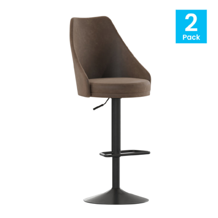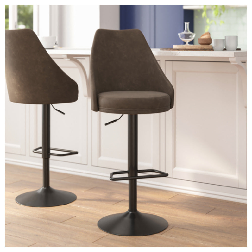 The Flash Furniture SY-802-BR-GG Chrishelle Bar Stool exemplifies a harmonious blend of durability and comfort, designed to cater to a diverse range of market needs. With a robust 300 lb. weight capacity, this bar stool is a reliable seating solution for various settings, from residential kitchens to bustling commercial bars. The LeatherSoft upholstery combines leather and polyurethane for added softness and durability, providing a luxurious feel while ensuring longevity. A notable feature is the tufted back and bucket style seat, designed with high-density foam padding, offering superior comfort and support during extended use. The stool is equipped with a pneumatic seat height adjustment mechanism, allowing users to customize the seating height effortlessly, enhancing usability across different environments. Its sturdy steel frame incorporates a foot ring, providing additional support and comfort for users. The inclusion of an embedded plastic ring protects flooring surfaces, making it an excellent choice for both aesthetic and practical considerations. Available in a warm brown hue, this set of 2 bar stools requires assembly, which is straightforward, ensuring they integrate seamlessly into your space. The Flash Furniture Chrishelle Bar Stool offers a compelling combination of style, comfort, and functionality, making it a versatile addition to any setting.