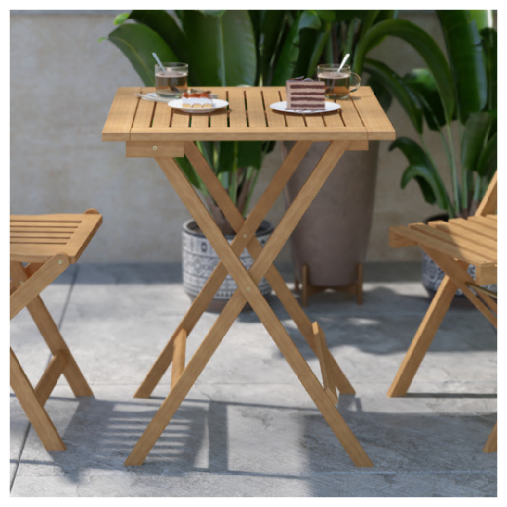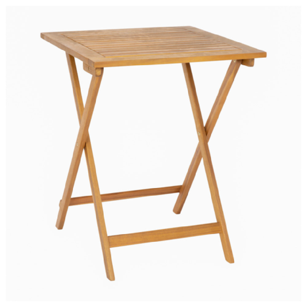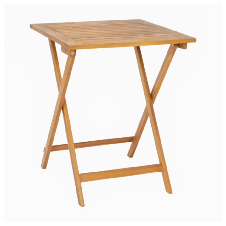 The Flash Furniture THB-T6060-NAT-GG Martindale Portable Folding Table is a versatile piece designed for various settings, including homes, offices, and outdoor environments. Measuring 23-1/2 inches in width, 23-1/2 inches in depth, and 29-1/2 inches in height, this square table provides a compact yet functional surface suitable for a range of activities. The table is crafted from acacia wood and features a natural finish that highlights the beauty of the wood grain, adding a touch of elegance to any space. The slatted top design not only enhances its visual appeal but also allows for easy cleaning and water drainage, making it ideal for outdoor use. An x-shaped frame provides sturdy support, accommodating up to 150 lbs of weight, ensuring it can handle various items securely. This table requires assembly, making it convenient for storage and transportation, particularly advantageous for those seeking portability. Its lightweight yet robust construction makes it a valuable asset for caterers, event planners, and homeowners looking for flexible furniture solutions. With its blend of functionality and aesthetic appeal, the Flash Furniture THB-T6060-NAT-GG Martindale Portable Folding Table is a smart choice for those in need of a reliable and attractive table.