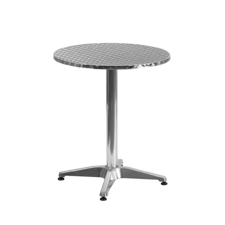 The Flash Furniture TLH-052-1-GG Table is a versatile piece designed for both commercial and residential use, offering a practical solution for various indoor and outdoor settings. Measuring 23-1/2 inches in diameter and standing 27-1/2 inches high, this round table is compact yet spacious enough for dining or casual gatherings. The smooth stainless steel top not only provides a sleek and modern aesthetic but also ensures durability and easy maintenance. Supported by an aluminum column and base, the table is robust and stable, yet it remains lightweight for effortless repositioning, meeting the needs of dynamic spaces or event setups. Equipped with plastic floor glides, it moves smoothly across surfaces, protecting floors from scratches and wear. This table requires assembly but is designed for quick setup, making it convenient for businesses that require fast and efficient furnishing solutions. In-stock items typically ship within 24 hours, ensuring timely delivery for urgent needs. The Flash Furniture TLH-052-1-GG Table is a practical and stylish addition to any space, offering reliable performance and versatility across a range of applications, from bustling cafes to serene patios, making it a valuable investment for hospitality environments and home settings alike.