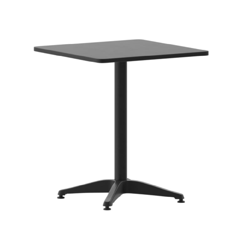 The Flash Furniture TLH-053-1-BK-GG Mellie Table is a versatile and practical solution for both commercial and residential environments. With dimensions of 23-1/2"W x 23-1/2"D x 27-1/2"H, this square table is designed to fit seamlessly into a variety of spaces, offering ample surface area for dining or work purposes. Its smooth stainless steel top provides a sleek, modern appearance while ensuring durability and easy maintenance. Supported by an aluminum column and base, the table is lightweight yet sturdy, making it easy to move and rearrange according to your needs. The inclusion of plastic floor glides protects flooring from scratches and enables effortless repositioning. This table is suitable for both indoor and outdoor use, offering flexibility in deployment across different settings. Available in black, it requires assembly, but its straightforward design ensures a hassle-free setup. The Flash Furniture Mellie Table is in stock and typically ships within 24 hours, making it a convenient choice for businesses or homeowners seeking to enhance their space with a reliable and stylish table. Its combination of durability, ease of maintenance, and adaptability makes it a valuable asset in any setting.