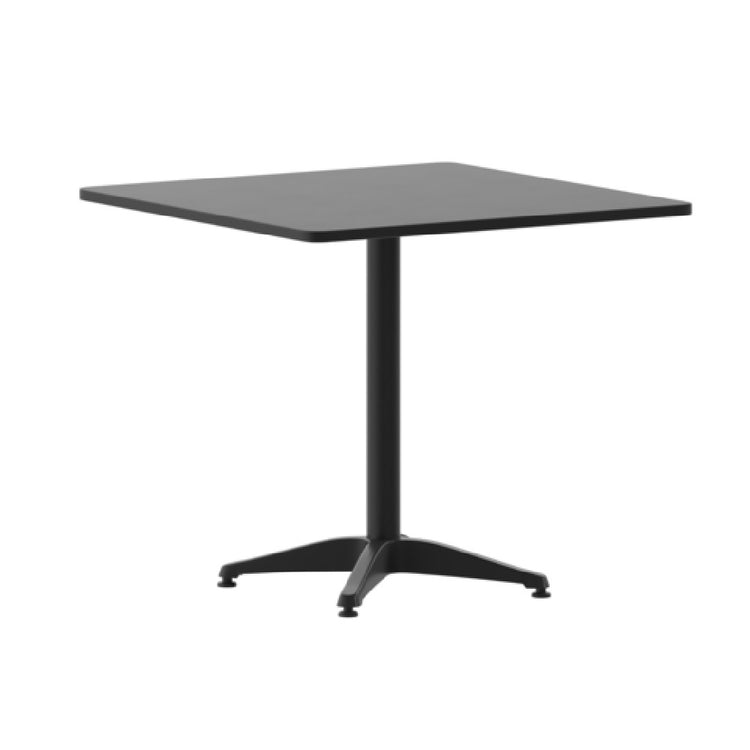 Flash Furniture TLH-053-3-BK-GG Mellie Table 31-1/2"W X 31-1/2"D X 27-1/2"H Square is an expertly crafted piece designed to cater to both commercial and residential needs. Its smooth stainless steel top combined with a sturdy aluminum column and base offers a sleek yet robust structure, ensuring durability and style. The table's dimensions - 31-1/2"W x 31-1/2"D x 27-1/2"H - make it a versatile choice for a variety of spaces and uses. Lightweight and fitted with plastic floor glides, it is easy to move and rearrange, minimizing floor damage and enhancing versatility. The Mellie Table is suitable for both indoor and outdoor settings, making it a practical choice for cafes, restaurants, or home dining areas. Its sleek black finish complements a wide range of decor styles, while assembly is required for setup. In-stock items are typically shipped within 24 hours, ensuring quick delivery for those in need of immediate solutions. This table's durable construction and adaptable design highlight its unique value across different market segments, including hospitality, retail, and home use, offering a blend of functionality and aesthetic appeal.