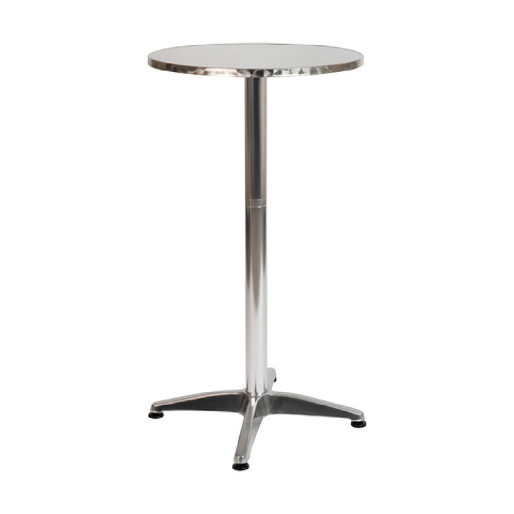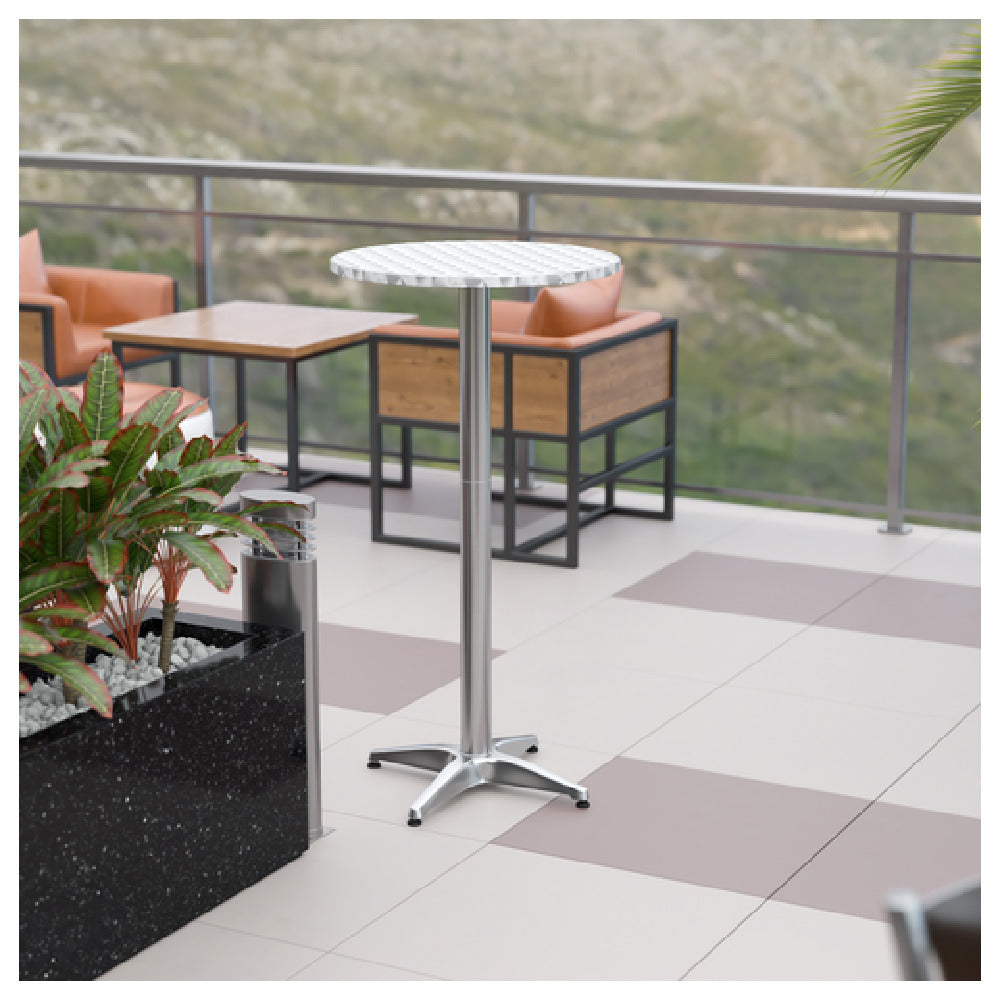 The Flash Furniture TLH-059B-GG Table is a versatile piece designed to meet the demands of various commercial and residential settings. With a round tabletop measuring 23-1/2 inches in diameter and a bar height of 43-1/2 inches, this table provides both functionality and style. Constructed with an aluminum column and base, it offers durability and stability, making it suitable for both indoor and outdoor use. The addition of plastic floor glides ensures that floors remain protected from scratches and scuffs, adding to its value in high-traffic areas. Its lightweight design makes it easy to move and position, catering to the dynamic needs of hospitality environments, cafes, patios, and home bars. The Flash Furniture TLH-059B-GG Table is engineered to withstand the rigors of daily use, offering a practical solution for those seeking a reliable and stylish table option. Its adaptability to various market segments, from commercial to residential, highlights its unique value proposition as a multi-functional piece of furniture. The table's sleek design seamlessly integrates with a variety of décor styles, while its robust construction ensures long-lasting performance. This combination of features makes it an ideal choice for professionals seeking quality and versatility in their furnishings.