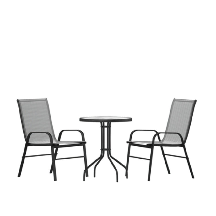 Flash Furniture TLH-0701303C-GY-GG Brazos 3 Piece Outdoor Patio Dining Set 23.75" Round Tempered Glass Patio Table