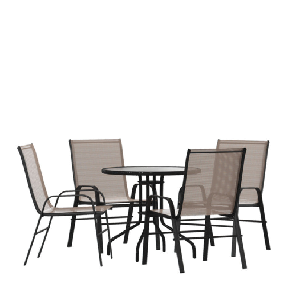 Flash Furniture TLH-0702303C-BN-GG Brazos 5 Piece Outdoor Patio Dining Set 31.5" Round Tempered Glass Patio Table
