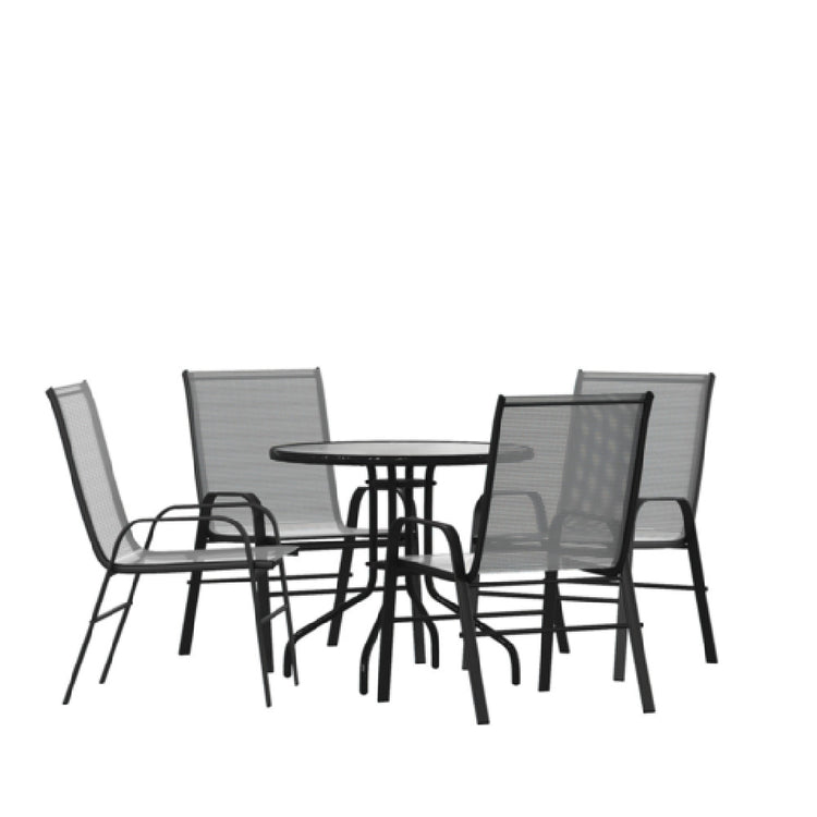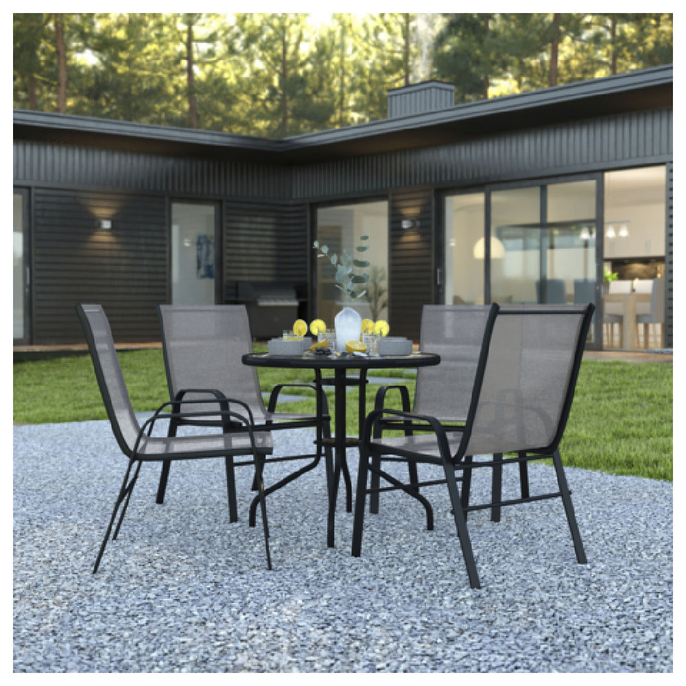 Flash Furniture TLH-0702303C-GY-GG Brazos 5 Piece Outdoor Patio Dining Set 31.5" Round Tempered Glass Patio Table
