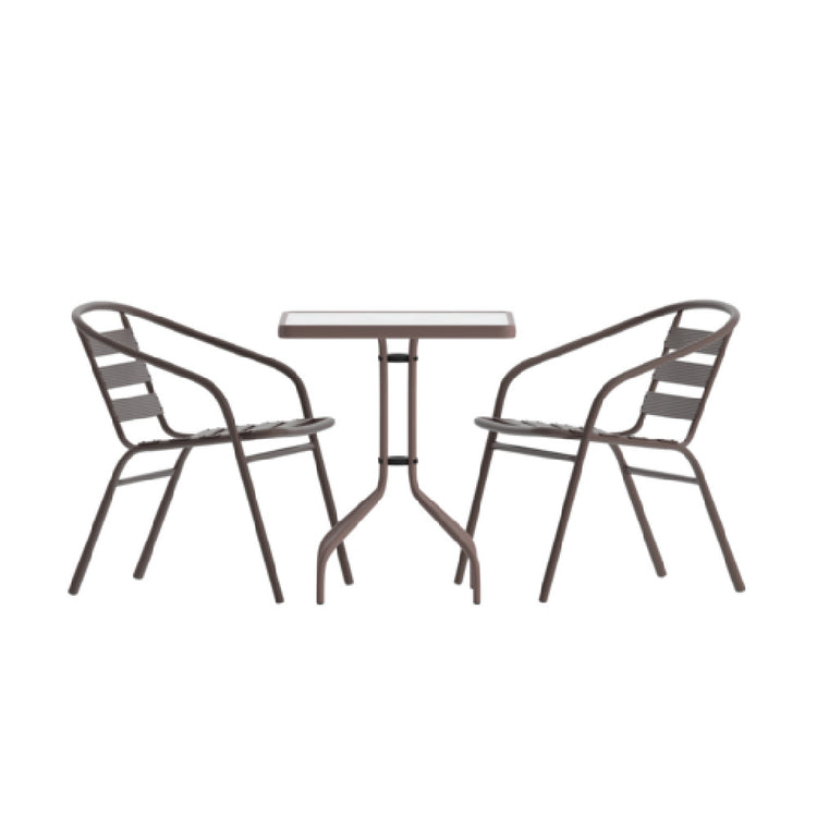 Flash Furniture TLH-0731SQ-017CBZ2-GG Lila Table & Seat Set 23-1/2" X 23-1/2" Square Glass Top Metal Table