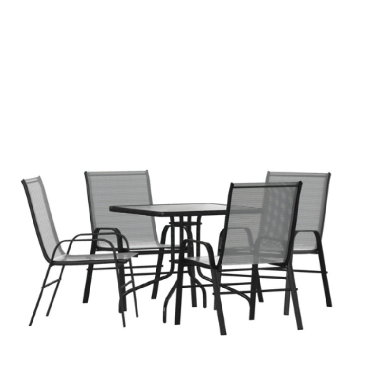 Flash Furniture TLH-073A2303C-GY-GG Brazos 5 Piece Outdoor Patio Dining Set 31.5" Square Tempered Glass Patio Table